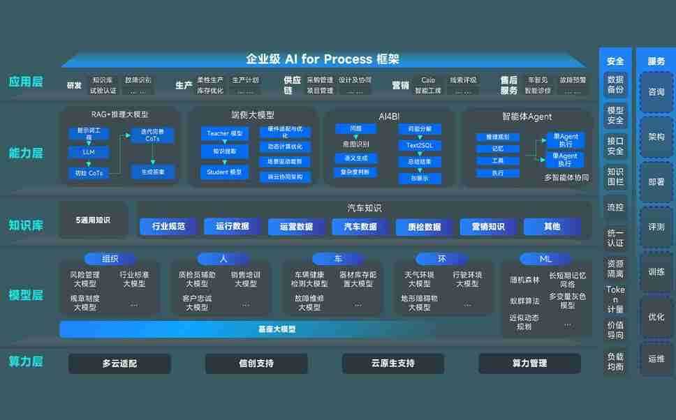 端到端的一站式AI工作空间深度融合了从企业战略规划到日常经营的全流程业务板块,,定向解决车企内部领域多、、、、部门多、、、链条长、、场景碎片化等难题,,,支持车企快速构建以AI为核心的生产力写作体系,,实现任务执行与AI能力的无缝集成与交互